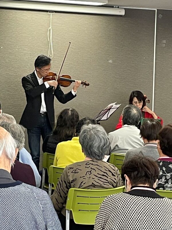 毎年、この時期にクリスマスムードを盛り上げていただくべく、ビオラ、チェロをたしなまれているご夫妻に来館いただきました。賛美歌や欧米のクリスマスソングなどを中心に今年も大人なムードたっぷりに演奏いただきました。やはりこの時期は音楽を耳にするだけで温かい気持ちに浸ることができます。今年も残りわずか・・・来年もいい年を迎えたいですね。