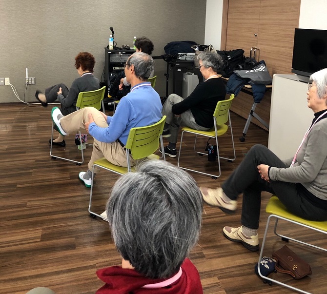 いつもの転倒予防のトレーニングの前に今日は、脳トレを取り入れた体と頭の体操から、