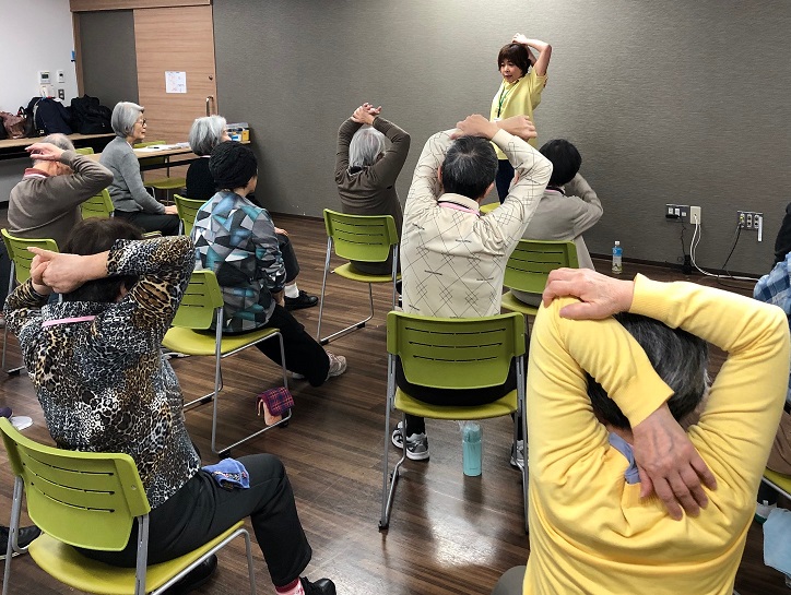 脳トレを兼ねて楽しむトレーニングと題してリズミカルに体を動かします。