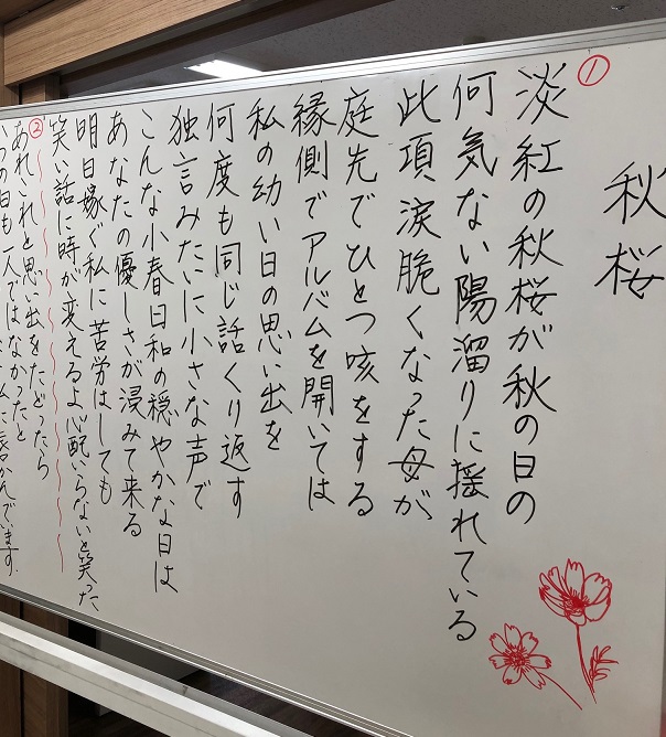 きょうは、秋にちなんだ歌『真っ赤な秋』と『秋桜』を歌いました。