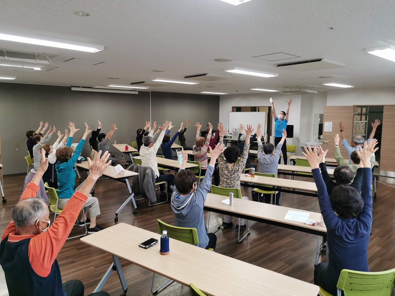 今回も、石川雅宗トレーナーによる「転倒予防に役立つ運動」が約45分に渡り行われました。