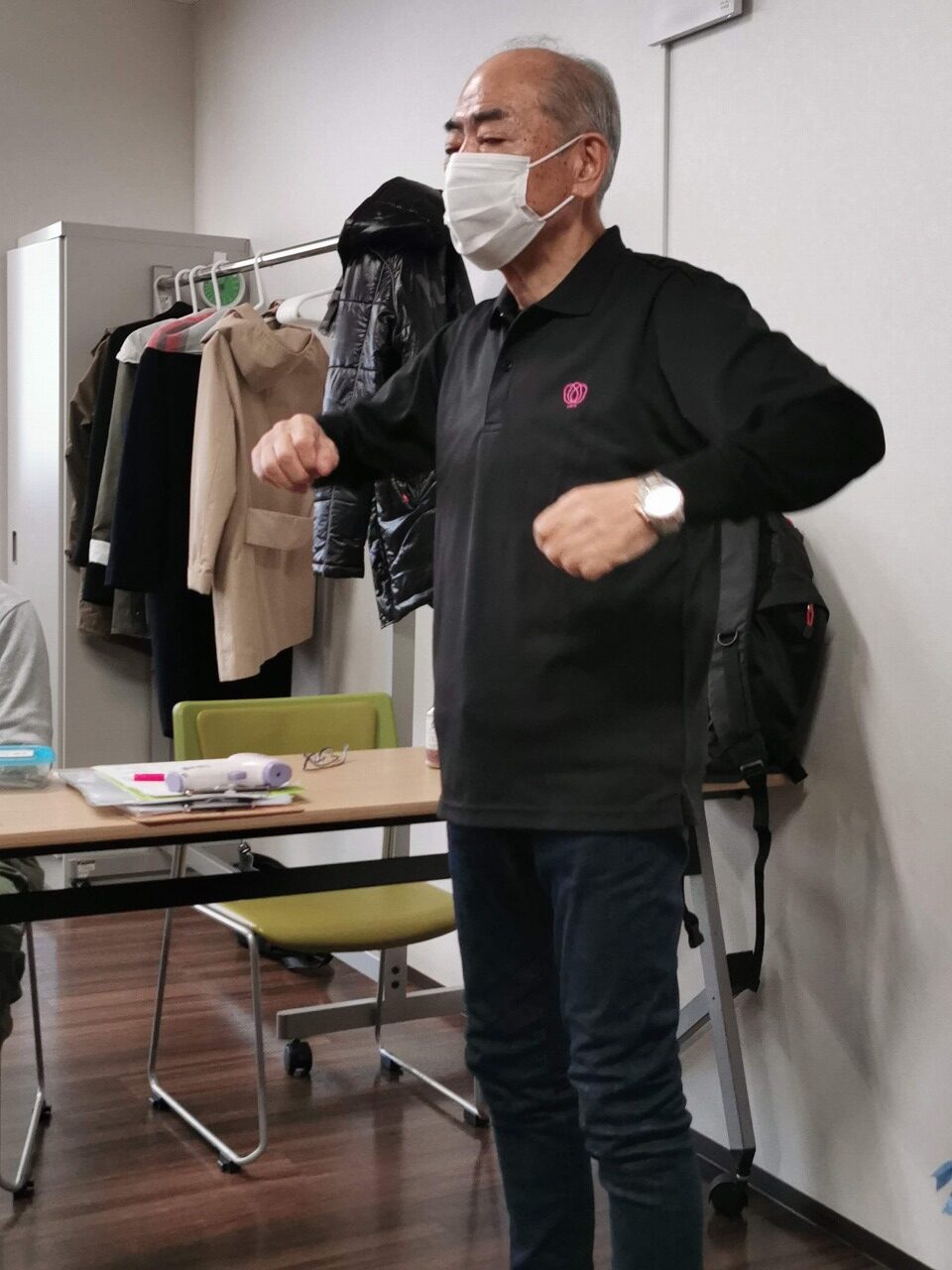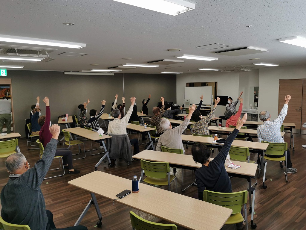 足腰を鍛えたり、肩甲骨を動かしたり、深い呼吸をしたり、音楽に合わせて体操したり。
