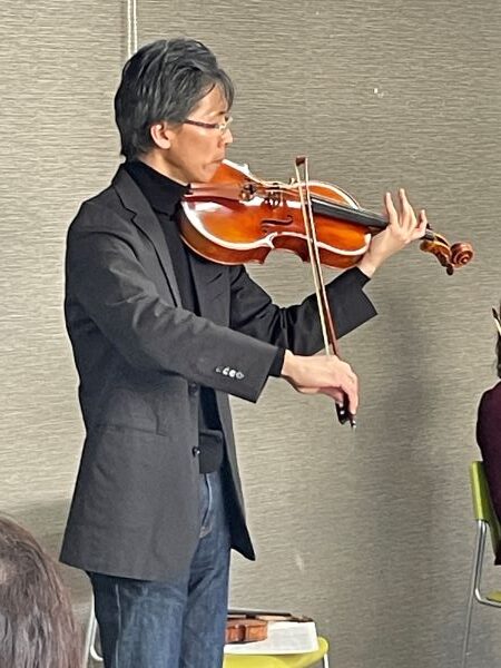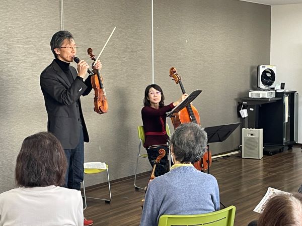 年末ということもあり、時期にふさわしく【蛍の光】やクリスマスにちなんだ曲を演奏いただきました。間近に演奏している姿を見るというのはなかなか演奏会に出かけないと経験できないものです。その音色に豊かな気分になって新しい年に思いをはせながら一年を締めくくることができました。