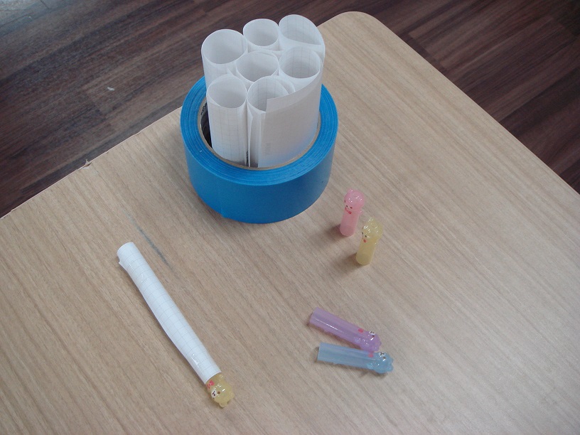 お次は、鉛筆キャップと手作り紙ストローでの吹き矢。