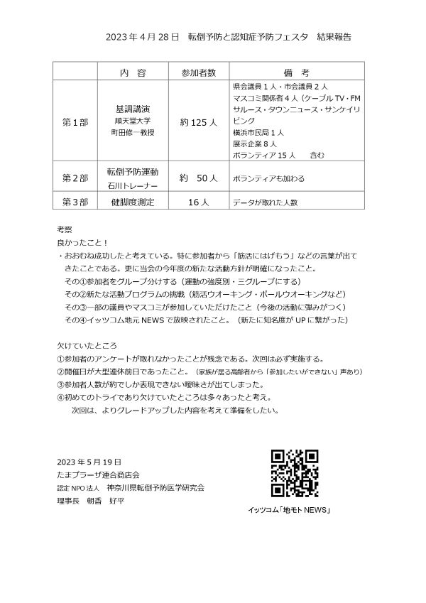 転倒予防と認知症予防フェスタ報告 2023.06.26 Post Share Hatena LINE RSS feedly Pin it note この記事のタイトルとURLをコピーする 転倒予防と認知症予防フェスタ紹介動画 前の記事 転倒予防と認知症予防フェスタ 写真 次の記事